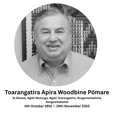 Kua tau ha pitakataka ki te Whanganui-a-Tara me tana tangi, he aitua, he aitua! Kua riro atu a Toarangatira Apira Woodbine Pōmare ki hōna rārangi mātua i te pō.